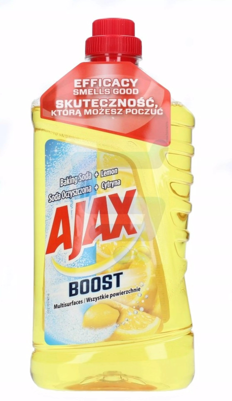 AJAX BOOST Baking Soda + Lemon to wyjątkowo skuteczny płyn uniwersalny przeznaczony do mycia wszystkich powierzchni wodoodpornych. Dzięki swojej wszechstronności, nadaje się idealnie do czyszczenia dużych powierzchni, takich jak podłogi i kafelki, ale także parkietów, podłóg drewnianych i paneli.