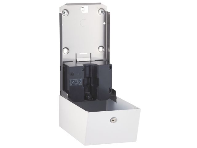 Trwałe i estetyczne wykonanie: Dozownik wykonany jest ze stali nierdzewnej . Posiada spawane i szlifowane łączenia boków, niewidoczne zawiasy, a także trwały stalowy zamek bębenkowy zlicowany z powierzchnią urządzenia. Dozownik zabezpieczony jest na kluczyk, co zapewnia bezpieczeństwo urządzenia.