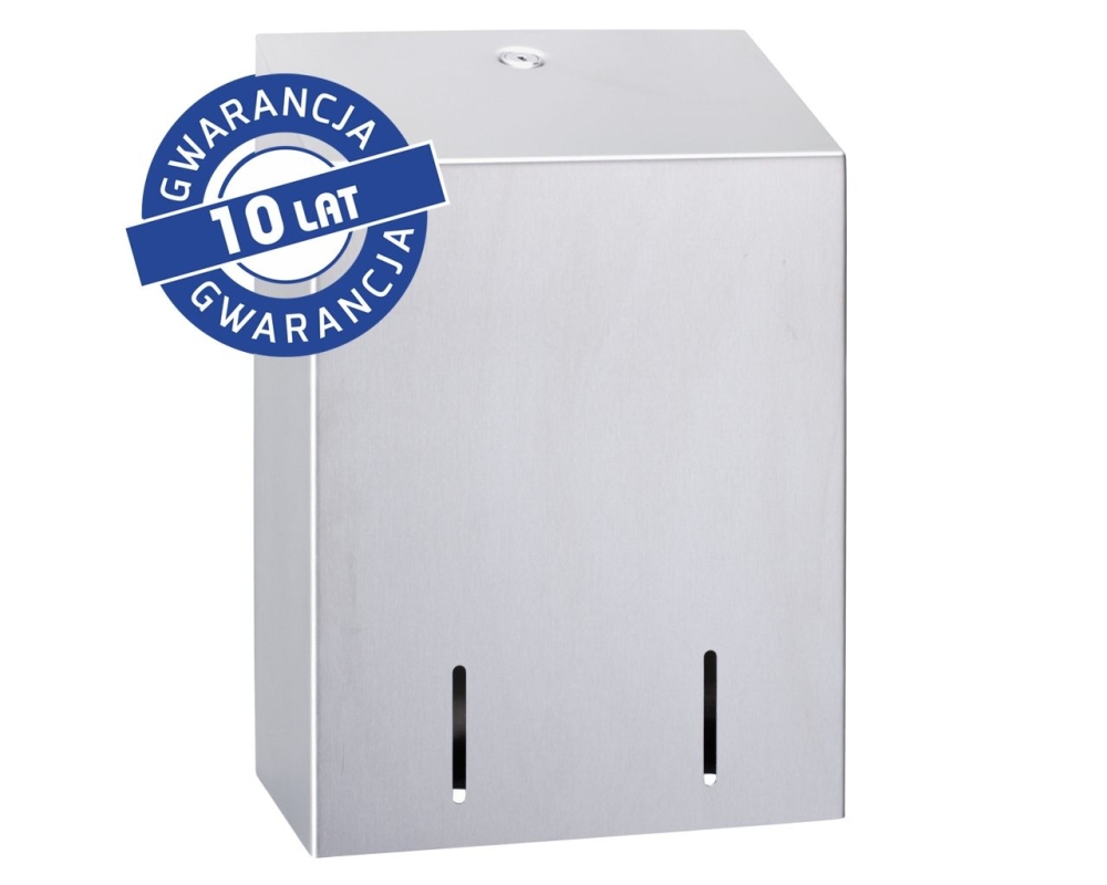 Pojemnik na papier toaletowy w listkach MERIDA STELLA to doskonałe połączenie funkcjonalności, nowoczesnego designu i wyjątkowej trwałości. Wykonany ze stali nierdzewnej, wyposażony w solidny zamek oraz dwa praktyczne okienka inspekcyjne, sprawdzi się idealnie w miejscach o dużym natężeniu ruchu, takich jak galerie handlowe, urzędy, hotele, szkoły czy placówki medyczne.