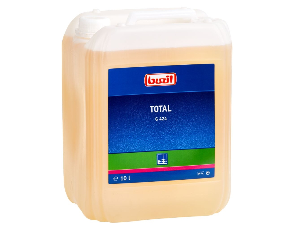 G424 Total to wyjątkowo skuteczny, alkaliczny środek do gruntownego czyszczenia posadzek i wykładzin odpornych na działanie wody i zasad. Dzięki swojemu wysokiemu pH (13,5-14) idealnie nadaje się do usuwania nawet najtrudniejszych zabrudzeń oraz ekstremalnie nawarstwionych starych powłok ochronnych, takich jak filmy woskowe czy polimerowe.
