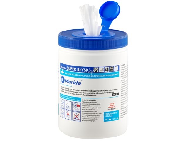Sposób użycia: Czyszczoną powierzchnię dokładnie wytrzeć chusteczką do uzyskania pożądanego efektu. W przypadku większych powierzchni lub mocnych zabrudzeń zaleca się użycie kilku chusteczek. Po wyczyszczeniu powierzchni nie wymaga spłukiwania wodą. W razie potrzeby, można dodatkowo wytrzeć lub wypolerować suchą bawełnianą ściereczką lub ręcznikiem papierowym.