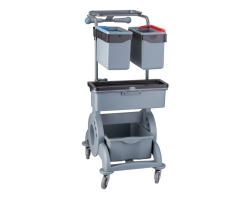 Wózek serwisowy do sprzątania kuwetowy, 2x wiadro 7 l, kuweta 13 l z pokrywą, uchwyt na worek 90 l - HFV501