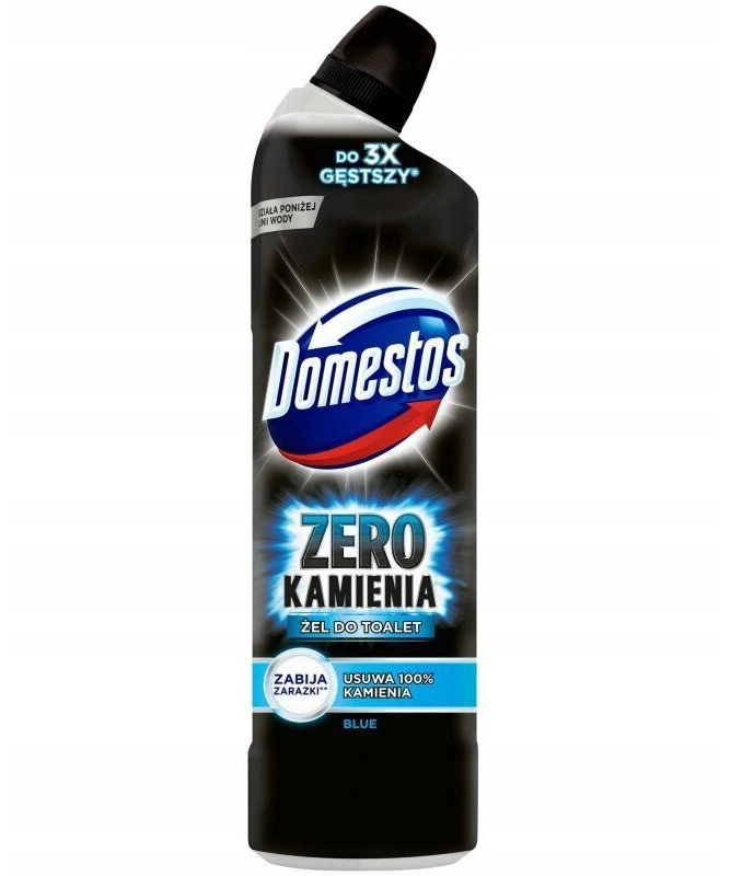 Domestos Zero Kamienia Blue to niezwykle skuteczny żel do czyszczenia toalet, stworzony z myślą o usuwaniu kamienia, osadów z twardej wody oraz rdzy. Dzięki formule opartej na silnych kwasach, żel zapewnia intensywne i głębokie czyszczenie oraz długotrwałe odświeżenie toalety. Wersja Blue wyróżnia się przyjemnym, świeżym zapachem, który dodaje uczucia czystości na długo po użyciu.