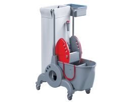 Wózek serwisowy do sprzątania, MERIDA OPERA, jednowiadrowy, wiadro dwukomorowe 15 l + 10 l - HFV005