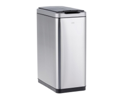 Eleganckie, stalowe kosze prostokątne o pojemności od 12 do 50 litrów. Wyposażone w szczelną pokrywę i system mocowania worka, są idealne do biur i miejsc publicznych.