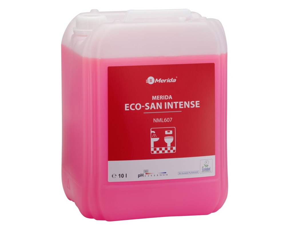 ECO-SAN INTENSE to ekologiczny, skoncentrowany preparat do gruntownego czyszczenia sanitariatów. Dzięki specjalnie opracowanej mieszance kwasów, produkt szybko i skutecznie usuwa nawet najbardziej uporczywe zanieczyszczenia, pozostawiając powierzchnie lśniące i higienicznie czyste – bez smug i konieczności wycierania do sucha.