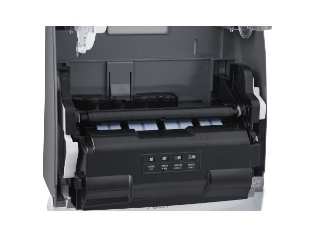 Panel sterowania: Urządzenie wyposażone jest w panel sterowania z 4 przełącznikami, umożliwiającymi programowanie różnych parametrów pracy, takich jak tryb działania, opóźnienie podawania, długość listka ręcznika i odległość zbliżenia dłoni.