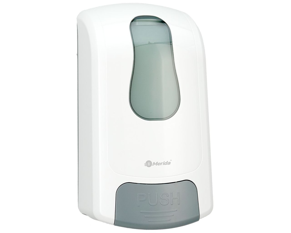 Dozownik mydła w płynie MERIDA ONE to eleganckie i wygodne rozwiązanie do uzupełniania mydła w obiektach o wysokim standardzie higieny. Wykonany z trwałego tworzywa ABS, dostępny w kolorze białym lub czarnym, doskonale wpasuje się w każdą przestrzeń.