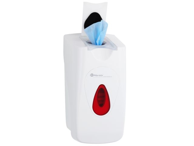 Nowoczesne i higieniczne rozwiązanie dla miejsc wymagających częstej dezynfekcji – dozownik MERIDA TOP na jednorazowe wkłady chusteczek nasączonych. Idealny do użytku w miejscach publicznych, obszarach spożywczych, przemysłowych, medycznych i domowych.