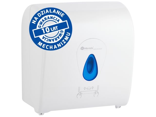 Merida Mechaniczny podajnik ręczników papierowych w rolach TOP AUTOMATIC MAXI, tworzywo ABS, biały połysk biały, okienko niebieskie - CTN302