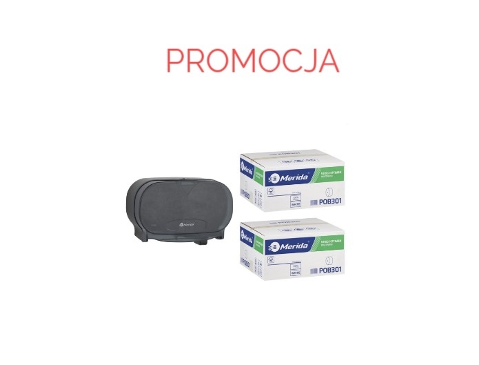 Zestaw MERIDA ONE czarny i papier toaletowy MERIDA OPTIMUM POB301 to doskonałe połączenie nowoczesnego designu, wysokiej funkcjonalności oraz oszczędności, idealne do obiektów wymagających dużej wydajności i estetyki.