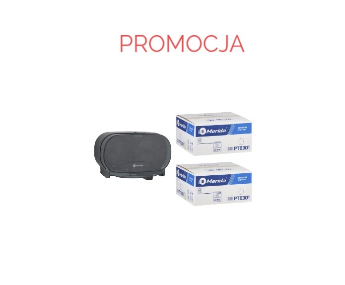 Zestaw składający się z pojemnika MERIDA ONE na dwie rolki papieru toaletowego bez gilzy oraz dwóch kartonów papieru toaletowego MERIDA TOP PTB301 to idealne rozwiązanie dla miejsc o dużym natężeniu ruchu, takich jak biura, obiekty handlowe, hotele czy restauracje. Zapewnia ciągłość dostępu do papieru i wygodę użytkowania dzięki przemyślanej konstrukcji.