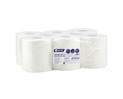 Specjalna wkładka dozująca: Innowacyjna wkładka dozująca uniemożliwia wyciągnięcie długiej wstęgi ręcznika, co zapobiega przypadkowemu marnowaniu i nadmiernemu zużyciu.