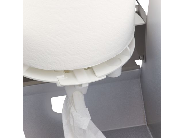 Dozowanie "listek po listku": Dzięki wkładce dozującej możliwe jest precyzyjne dozowanie ręczników "listek po listku", co zwiększa efektywność i redukuje ilość odpadów.