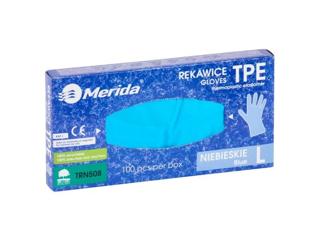Merida Rękawice elastomerowe TPE, niebieskie, rozmiar L, opakowanie 100 szt. (TRN508)