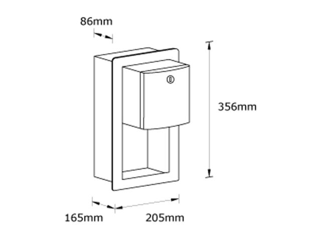 Wymaga przygotowania odpowiedniego otworu montażowego: Montaż pojemnika wymaga przygotowania odpowiedniego otworu w ścianie o wymiarach (wysokość/szerokość/głębokość) 311 x 159 x 86 mm.