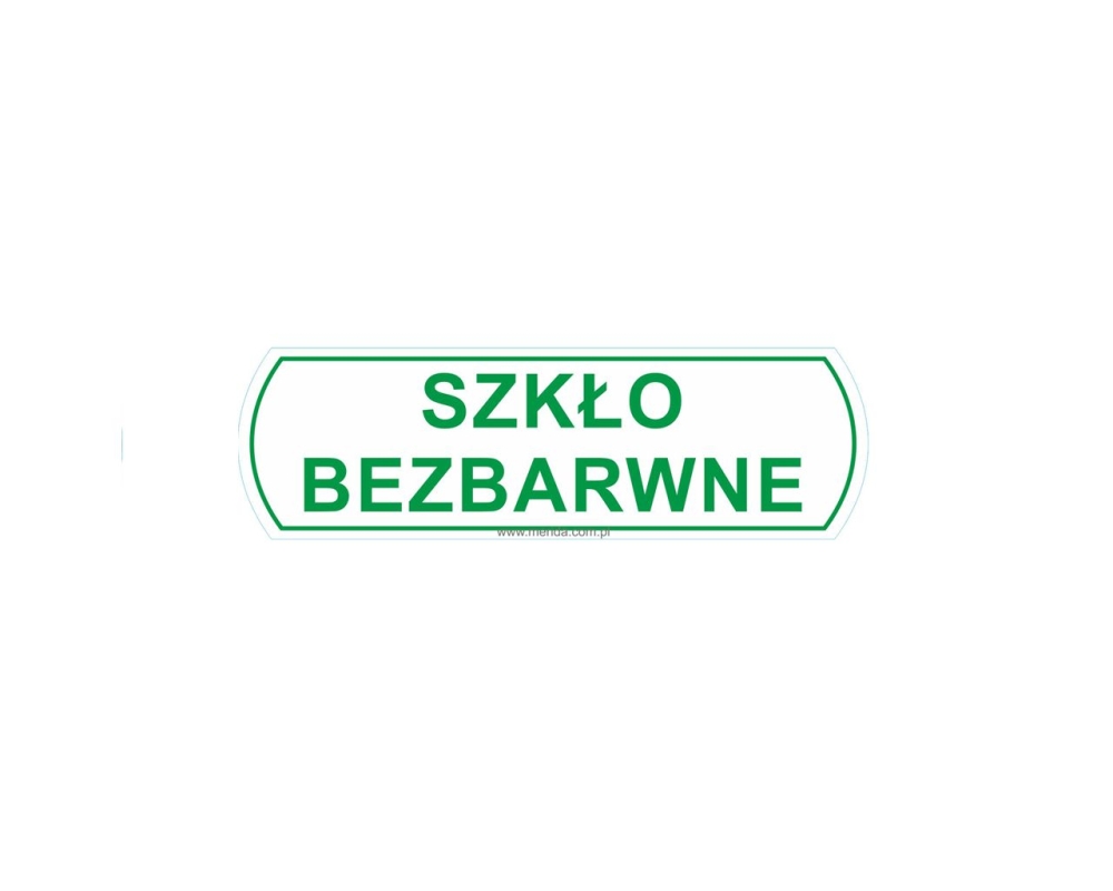 NAKLEJKA NA KOSZE DO SEGREGACJI ODPADÓW "SZKŁO BEZBARWNE", DUŻA, WYMIARY: 14,5 CM X 4,4 CM