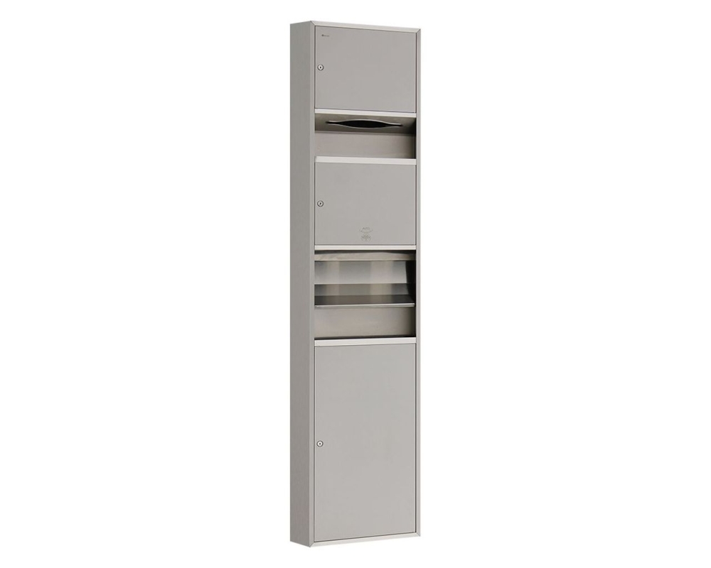 Pojemnik STELLA to przykład inteligentnego i przemyślanego designu, który łączy w sobie trzy kluczowe funkcje. Wszystkie te elementy są osadzone w wytrzymałej obudowie ze stali nierdzewnej, co zapewnia elegancki wygląd i trwałość. Natynkowy montaż na ścianie pozwala zaoszczędzić cenną przestrzeń podłogową i utrzymać pomieszczenie w czystości. To doskonałe rozwiązanie dla miejsc o dużym natężeniu ruchu, gdzie wygoda użytkowników jest priorytetem.