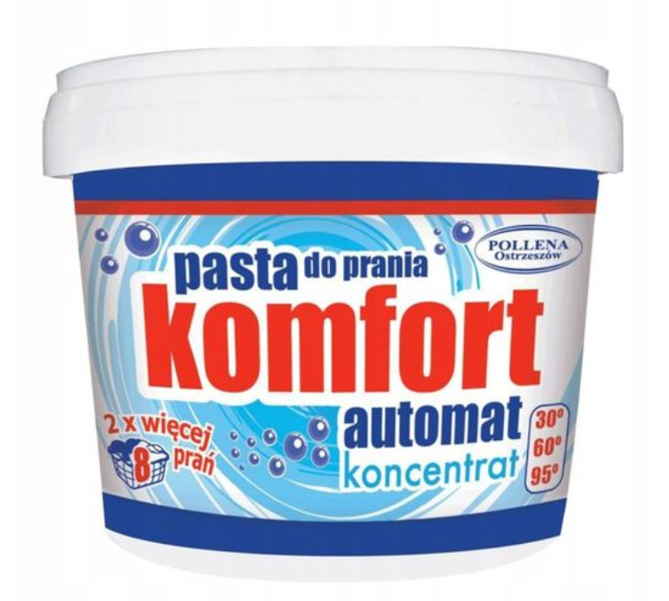 Skoncentrowane działanie: Pasta KOMFORT została opracowana z myślą o maksymalnej skuteczności. Jej formuła zawiera dwukrotnie więcej aktywnych składników piorących w porównaniu do zwykłych proszków, co zapewnia doskonałe rezultaty nawet przy niskiej temperaturze prania.
