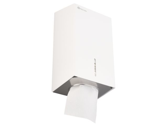 Pojemnik mieści do 450 sztuk listków papieru toaletowego, co odpowiada łącznej długości aż 103,5 metra. To doskonałe rozwiązanie do miejsc o umiarkowanej częstotliwości użytkowania, pozwalające zredukować częstotliwość uzupełniania.