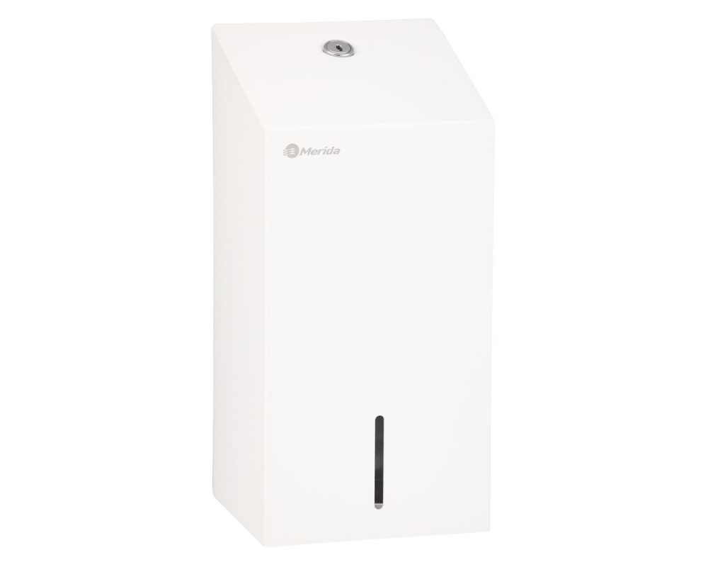 Elegancja, funkcjonalność i trwałość zamknięte w nowoczesnej formie – MERIDA STELLA to pojemnik na papier toaletowy w listkach, zaprojektowany z myślą o miejscach, w których estetyka i niezawodność mają kluczowe znaczenie. Idealny do toalet o średnim i wysokim natężeniu ruchu – od eleganckich biur, przez hotele, po placówki edukacyjne i medyczne.