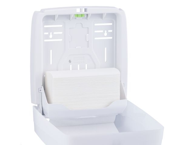Pojemnik na ręczniki składane HARMONY SLIM to praktyczne rozwiązanie, które ułatwia zarządzanie i dystrybucję ręczników papierowych składanych typu SLIM. Ten produkt jest idealny do miejsc o ograniczonej przestrzeni, oferując jednocześnie wygodne przechowywanie i wydawanie ręczników.