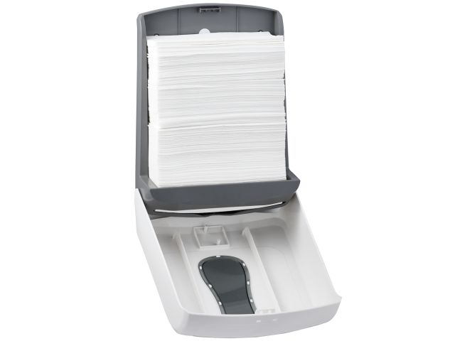 Duża pojemność: Pomimo swojego kompaktowego rozmiaru, pojemnik jest w stanie pomieścić do 500 sztuk ręczników, co zapewnia długotrwałe użytkowanie bez konieczności częstego uzupełniania.